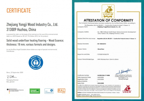 从享誉盛名的“木精髓”到如今深入人心的“农夫山林”,永吉地板始终不遗余力推出高环保、高颜值、高性价比的产品。正是凭借一步一个脚印的成绩,永吉地板成为行业内首家同时拥有德国蓝天使认证和欧盟CE认证的品牌,两项近乎严苛的环保测试,再度验证了永吉地板在健康家居领域的标杆地位。