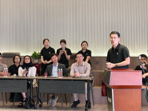 法迪奥董事长助理沈增瀚先生向代表团系统阐述了品牌发展理念,从绿色原材料甄选、低碳智能制造流程、顶 尖设计带来的艺术表现力,到产品可回收性的完整可持续实践闭环。