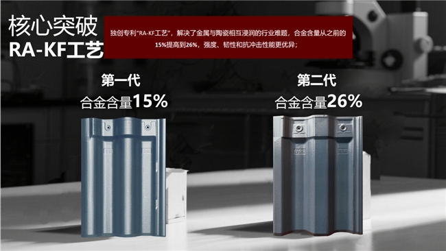 从合金一代到合金二代,通过坯体创新与核心突破RA-KF工艺,合金二代产品合金含量显著提升。